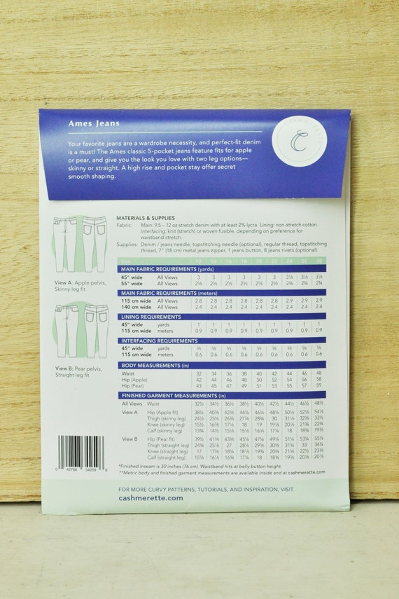 Ames Jeans Sizes 12 28 Curvy Sewing Pattern By Etsy